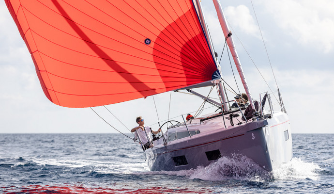 Le plan de pont a été pensé pour que les déplacements, la position à la barre et la vie au mouillage soient à la fois confortables et sécurisés au maximum. Les manœuvres de drisses et d’enrouleur se situent en avant du cockpit tandis que le barreur dispose d’un winch sur chaque bord pour régler les voiles avant. L’ensemble permet d’obtenir un cockpit entièrement dédié au farniente et une circulation fluide pour rejoindre la plateforme de bain.